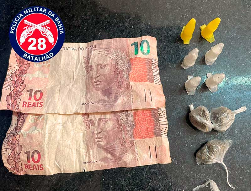 No local, a mulher, com as características informadas, foi identificada e flagrada dispensando uma uma sacola que continha 2,7 gramas de substância análoga a maconha e