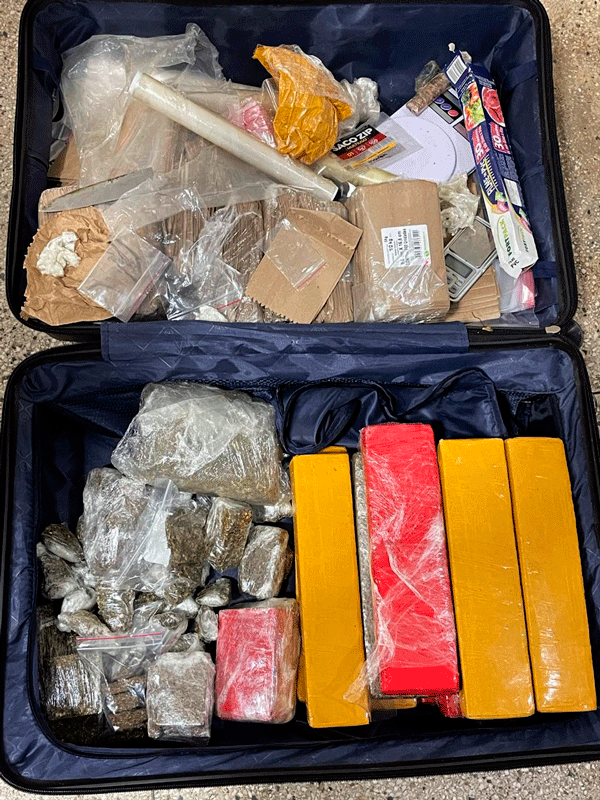 Ao chegarem ao local, a equipe constatou o fato. Foram encontrados 11 tabletes de maconha, 33 pedaços da mesma substância, duas balanças de precisão, duas facas, duas porções de maconha e embalagens para acondicionar drogas.