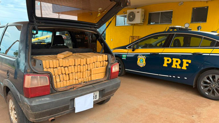 A ocorrência teve início quando os policiais deram ordem de parada ao motorista de um Fiat Uno. Durante a abordagem, os agentes perceberam um forte cheiro característico de maconha e, ao revistarem o veículo, encontraram diversos fardos da droga ocupando grande parte do interior do carro.