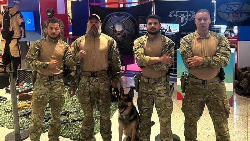 Os K9s, de nomes Laika e Abutre, das raças labrador e pastor alemão, respectivamente, estiveram no evento e interagiram com as pessoas que prestigiaram a Expo Segurança. Durante o evento, os animais passam por avaliação do treinador responsável, que verifica as condições físicas, o nível de estímulo e a adequação ao ambiente.