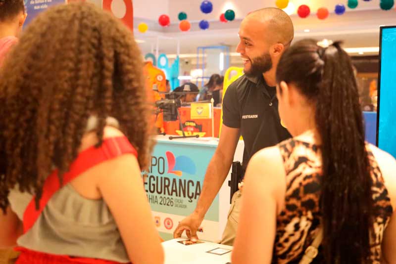 Equipes do Departamento de Proteção à Mulher, Cidadania e Pessoas Vulneráveis (DPMCV) participam da 10ª edição da Expo Segurança, realizada entre os dias 29 e 31 de janeiro, no Shopping da Bahia, em Salvador, com ações voltadas à conscientização e à proteção de grupos vulneráveis.