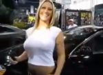 Vejam o que a loira faz com os peitos para chamar a atenção