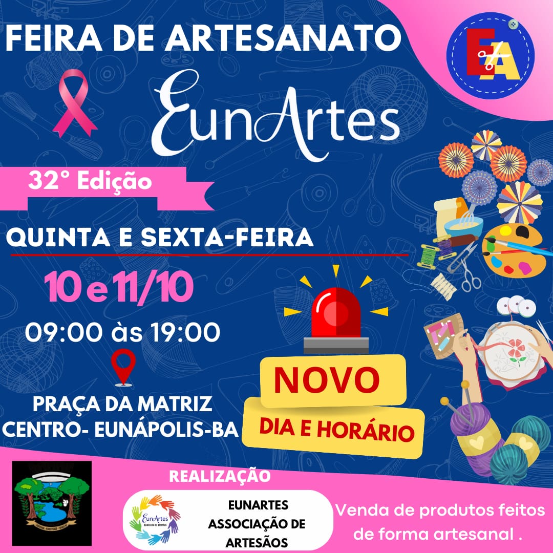 Nos próximos dias 10 e 11 de outubro, o centro de Eunápolis será tomado por uma explosão de criatividade e arte! A 32ª Edição da Feira de Artesanato EunArtes chega trazendo muito mais do que produtos artesanais – será uma verdadeira imersão cultural, repleta de novidades e surpresas que prometem encantar visitantes de todas as idades.