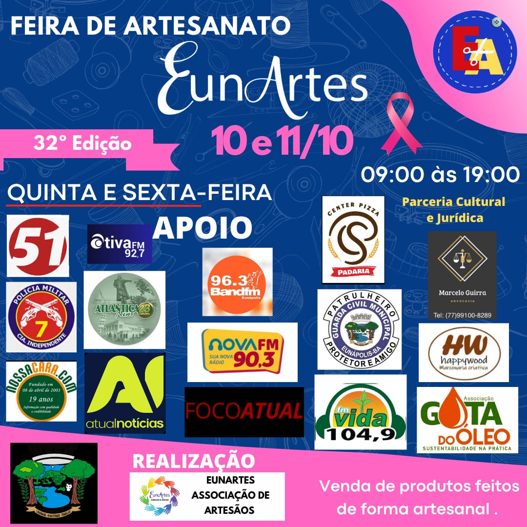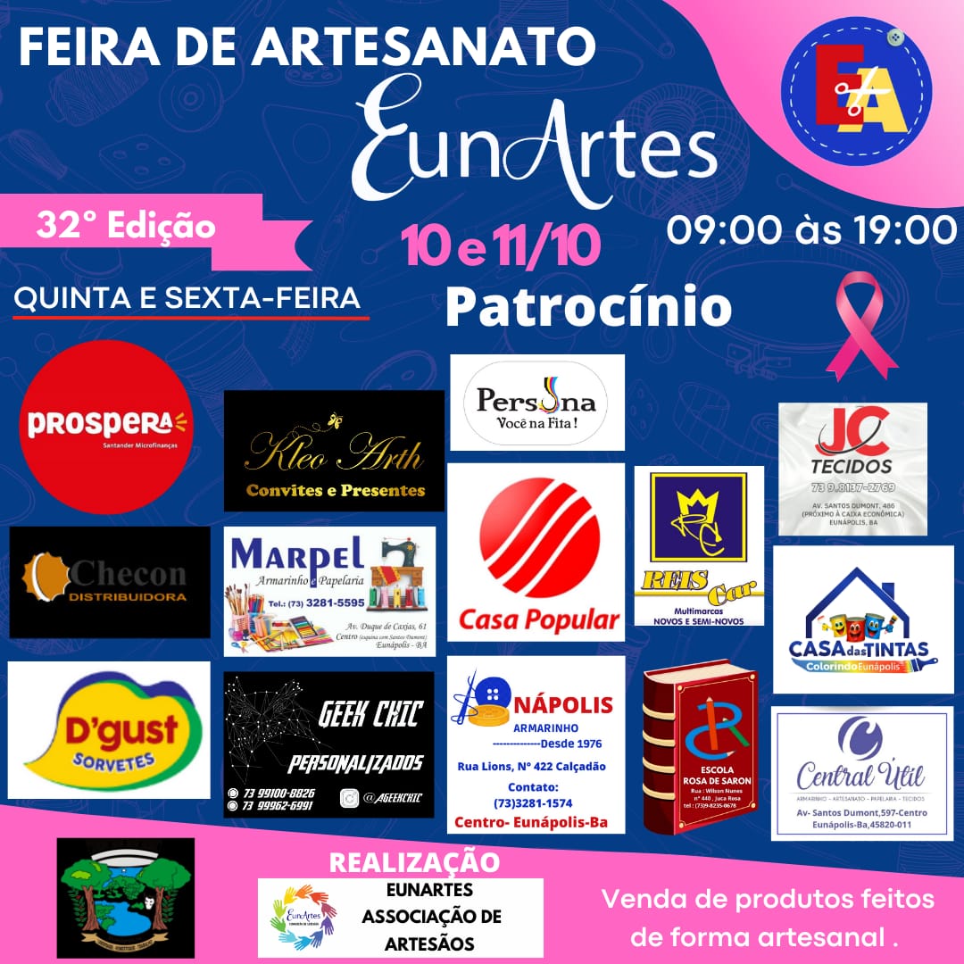 Não perca essa oportunidade de prestigiar o melhor do artesanato e cultura da nossa região. Venha, traga a família e viva uma experiência única na 32ª Feira de Artesanato EunArtes! A arte local te espera para surpreender e encantar!