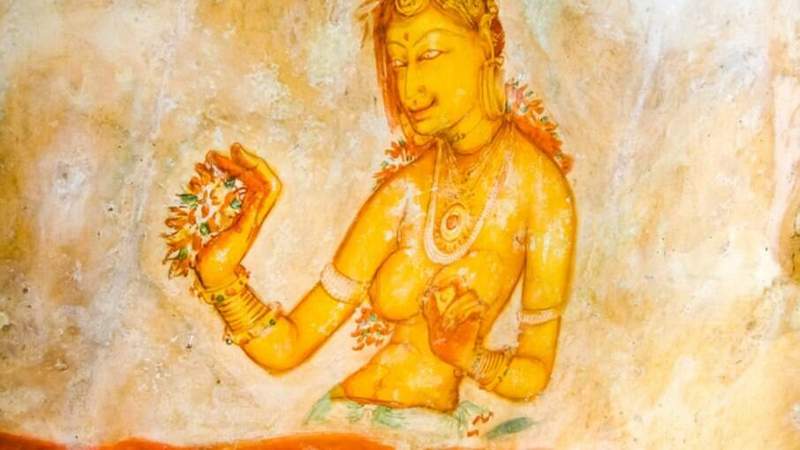 As artes ainda muito bem conservadas se encontram já na metade da subida. As pinturas retratam mulheres de cintura fina e seios fartos que, segundo uma lenda local, seriam as amantes do rei Kasyapa – que teria mais de 500 mulheres. Por outro lado, também existe a teoria de que sejam representações de ninfas celestiais da deusa Tara, pela semelhança com as figuras rústicas em Ajanta, na Índia.