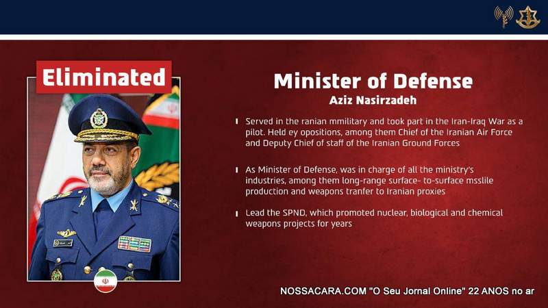 Agora pode ser confirmado que, entre os altos funcionários iranianos, os seguintes oficiais foram eliminados pelo IDF durante o ataque inicial: