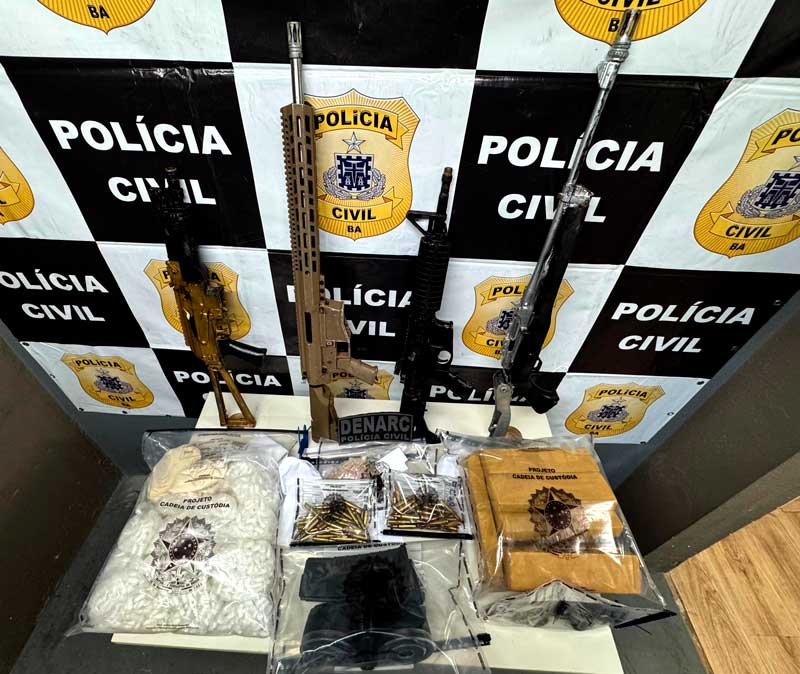 Fuzis, revólver e grande quantidade de entorpecentes são apreendidos
