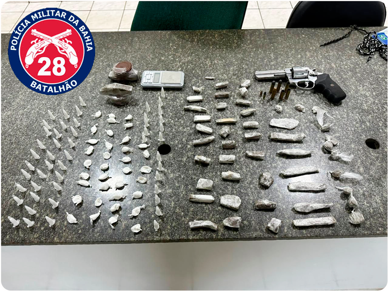 A Polícia Militar da Bahia informa que, na tarde desta quarta-feira (25/03), por volta das 15h, no município de Itabela/BA, uma ação policial resultou na apreensão de arma de fogo, munições e significativa quantidade de entorpecentes, após confronto com indivíduo armado na Rua Mirabela, bairro Bandeirante, em uma viela próxima à Rua Rui Barbosa.