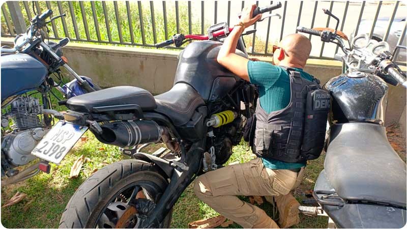 O veículo, uma Yamaha/MT-03, cor preta, placa MSP-2J98, ano 2008/2008, licenciada no município de Porto Seguro/BA, foi apresentado espontaneamente após suspeita de aquisição mediante transação fraudulenta.